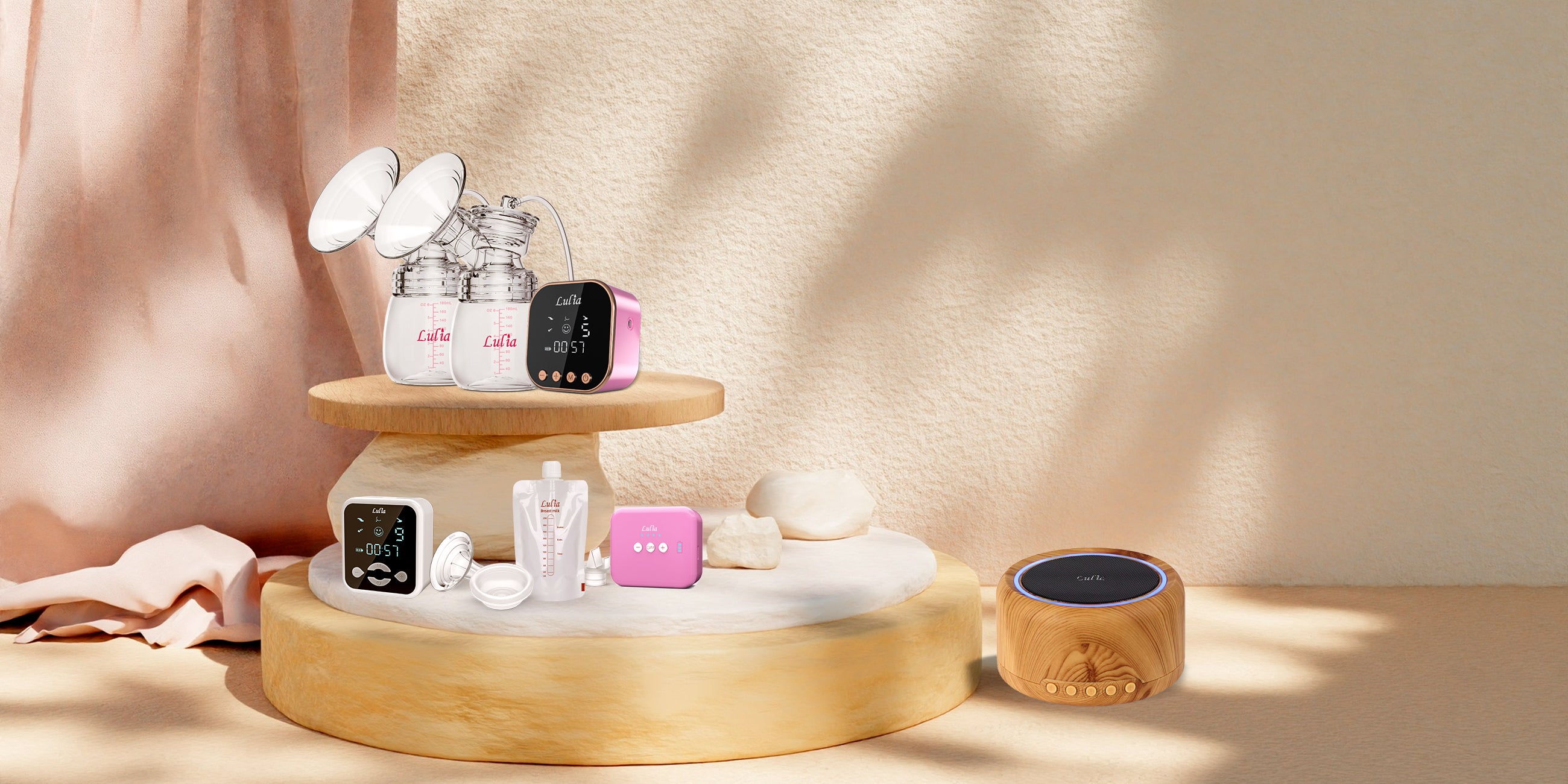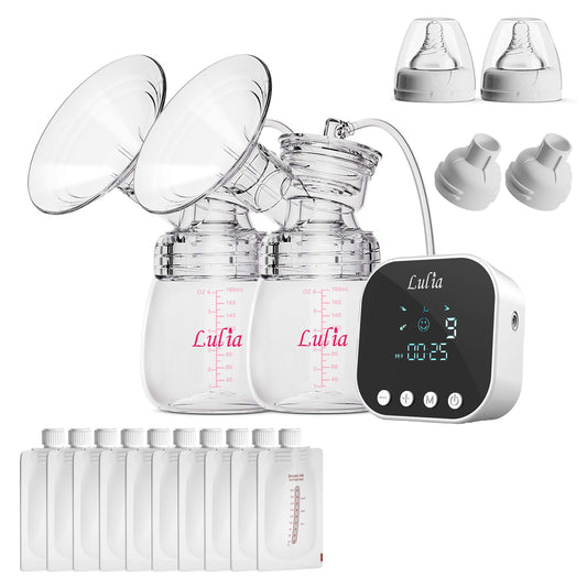 LU-01 Lulia Double Breast Pump with 10 Breastmilk Storage Bags(Pink&White)